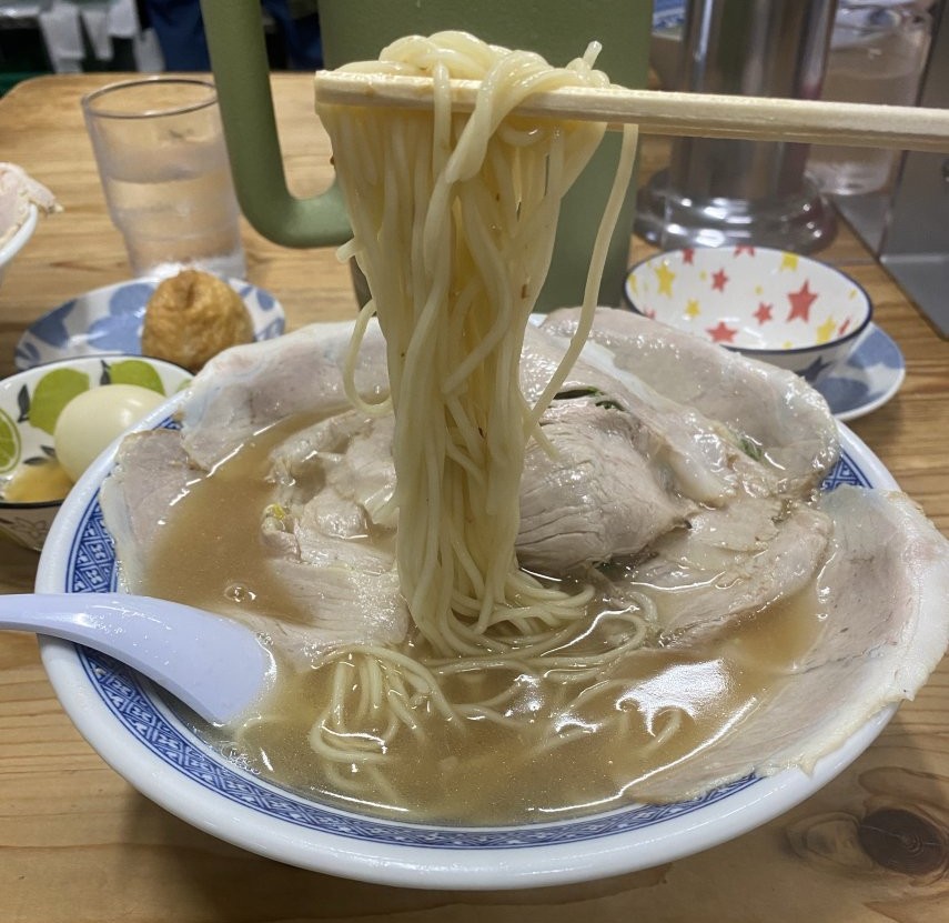 つるつるとした喉越しと、噛むごとに小麦の風味が感じられる麺は、スープの旨味をさらに