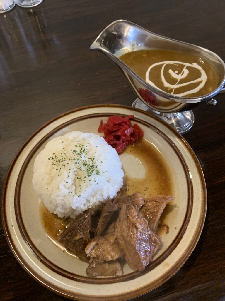 散々迷った結果、僕がオーダーしたのは、お店の看板メニューの一つでもある「煮豚カレー」。